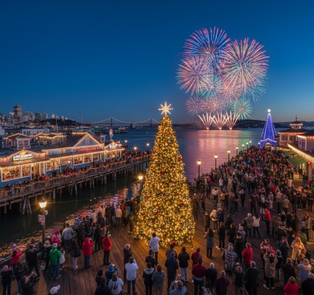 Pier 39 hosts live music, street performers, festive dining, and early evening family celebrations. Itâs ideal for families with kids who want holiday fun without the late-night crowds.
